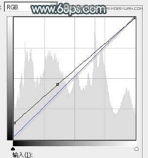 6、创建曲线调整图层,对RGB,蓝色通道进行调整,参数及效果如下图。这一步把图片暗部稍微提亮。