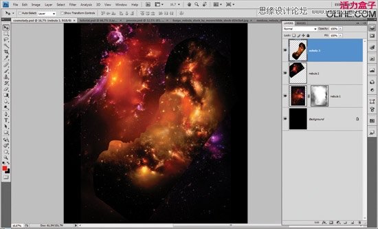 在图层顶部添加更多的星云图片,重复前面3个步骤。