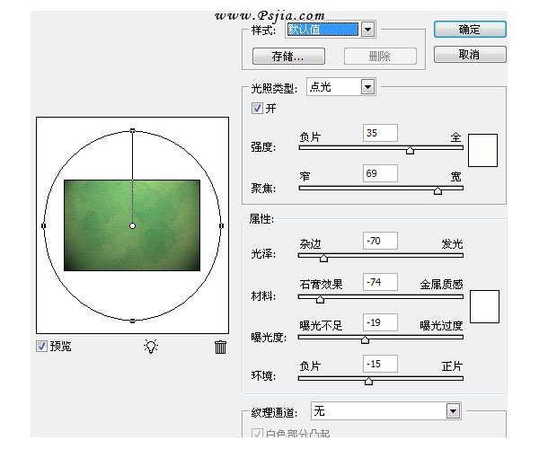 完成上面几步后我们在选择滤镜>渲染>光照效果。设置如下: