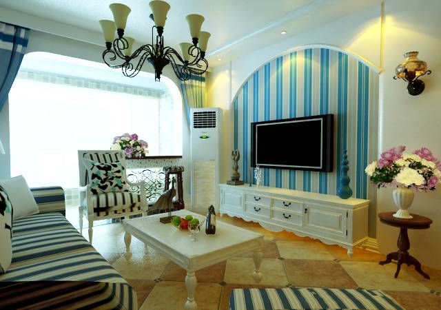 地中海客厅沙发电视柜茶几装修案例
